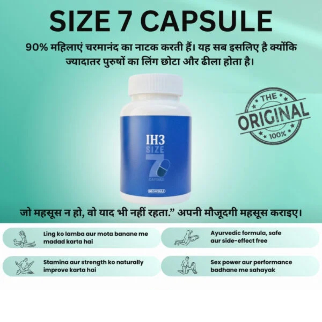 Size 7 Capsule ek trusted Ayurvedic medicine for men hai jo stamina, energy aur overall male vitality ko naturally support karta hai. Agar aap kamzor stamina, thakaan, ya daily life me energy ki kami mehsoos karte hain, to Size 7 Capsule ek safe aur natural option ho sakta hai.